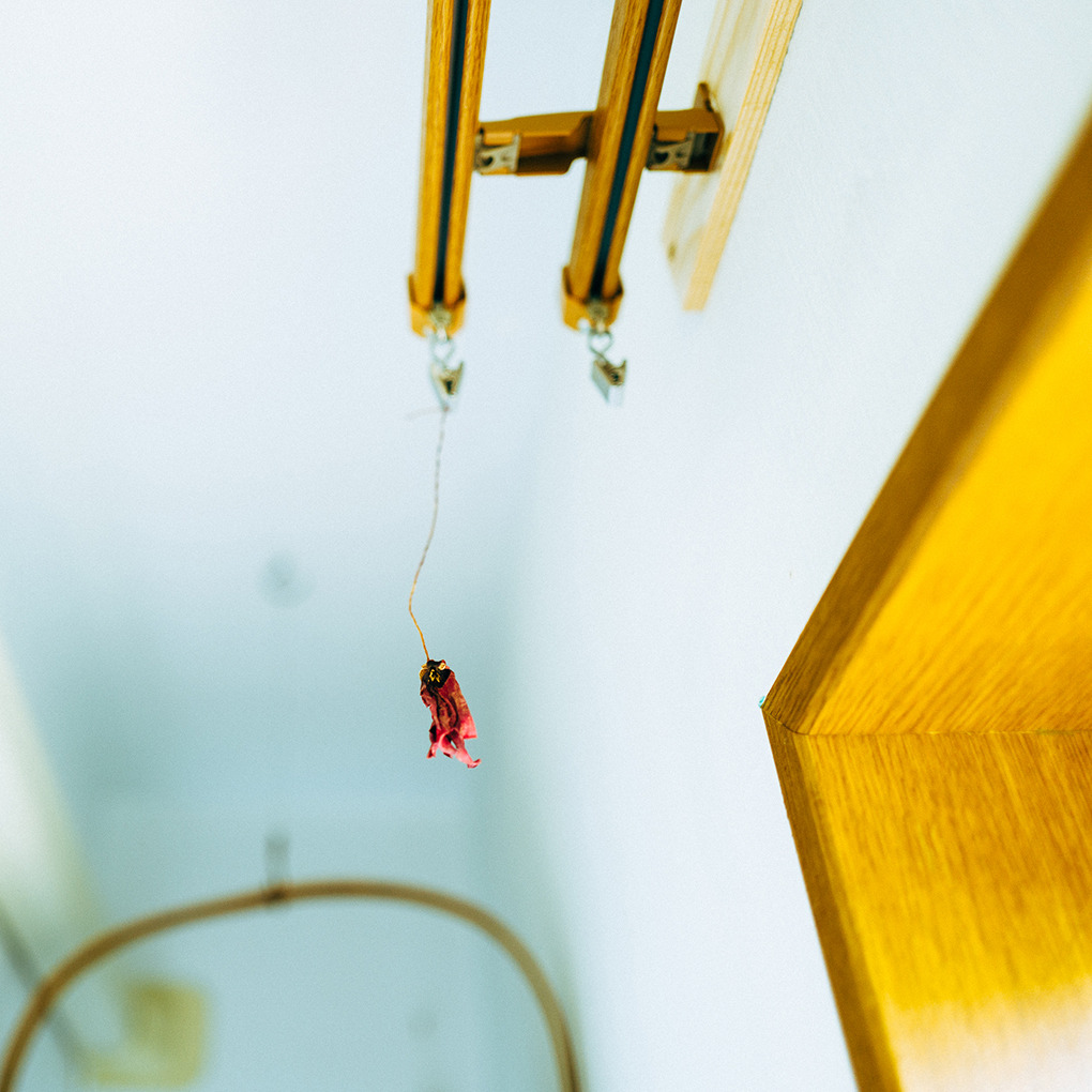 友人の家のカーテンストッパーに小さなドライフラワーが挟まれていた。