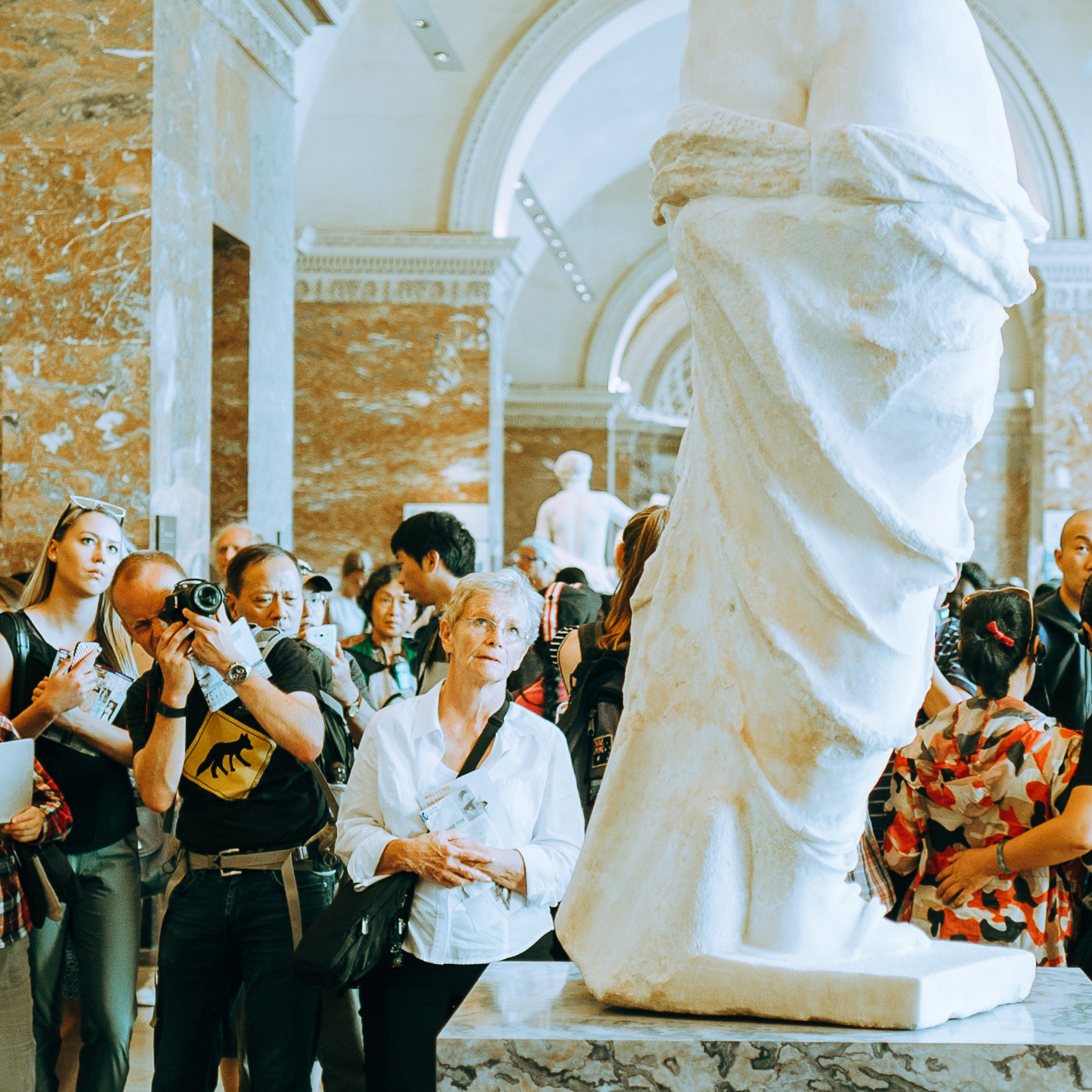 ナポレオン広場に着くと、やっぱり圧倒された。メインエントランスであるルーブル・ピラミッドに並んで、例の如く荷物検査。館内の案内表示でようやく日本語を見ることができた。実を言うと、ロダンにもピカソにもポンピドゥーにも日本語の案内表示はない。アジア圏では唯一「中文」と書かれた中国語のみ。パリを訪れる日本人観光客は多いはずだけど、でも逆に、日本でフランス語訳の案内表示を見かけたことはないからお互い様か。しかしパンフレットのフォントがいびつなお蔭で中国語にしか見えない 笑